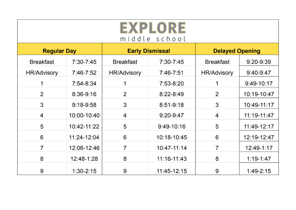Explore Middle School Bell Schedule